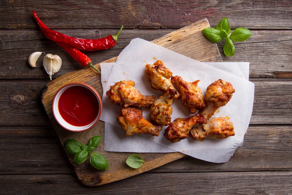 Heerlijk gemarineerde kippenvleugels, langzaam gegrild voor een knapperige buitenkant en mals vlees, geserveerd met salade, saus en lavash